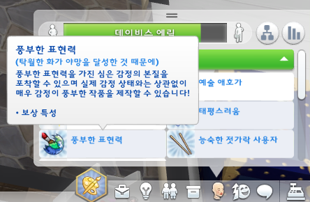 야망 보상으로 '풍부한 표현력' 특성을 얻었고