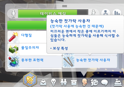 '능숙한 젓가락 사용자' 특성도 있더라구요.