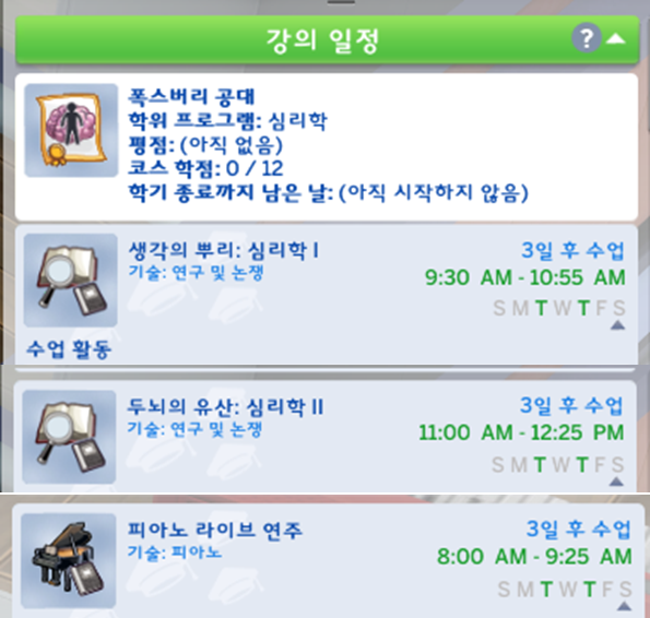 전공 2개에 교양으로 피아노랑 요리 넣어줬어요.